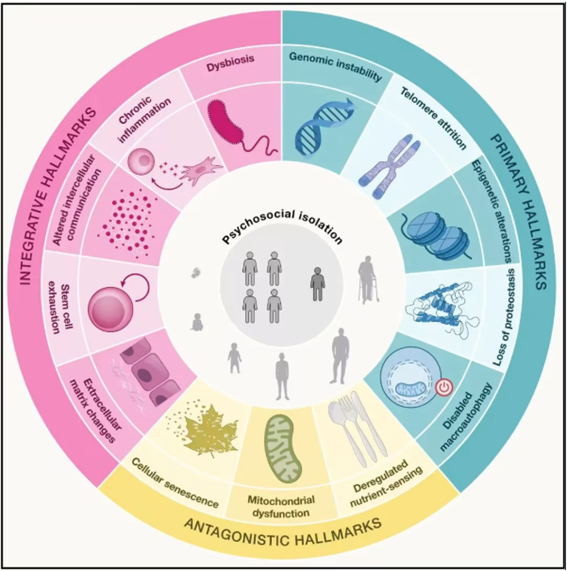 特に「心理社会的孤立」は、ストレスや免疫・代謝への影響を通じて炎症や睡眠障害を引き起こし、老化を間接的に促進する可能性が指摘されています。